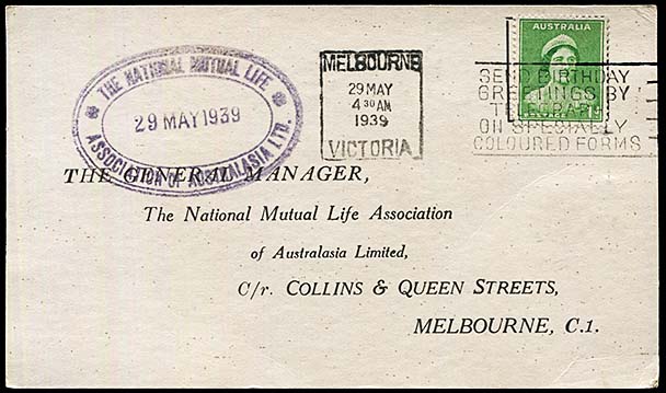 The Send Birthday Greetings ... slogan was used in Melbourne from 15 July 1937 to 1 November 1940.