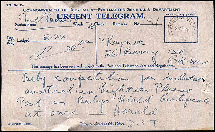 - appears to have been printed on plain cream paper not the usual pink reserved for URGENT rate telegram forms. The reverse side shows the distinction very clearly and so it is not a matter of the form fading in strong sunlight.