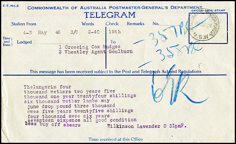 Possibly this form is a copy of a message from Hay which was repeated at Wagga Wagga.