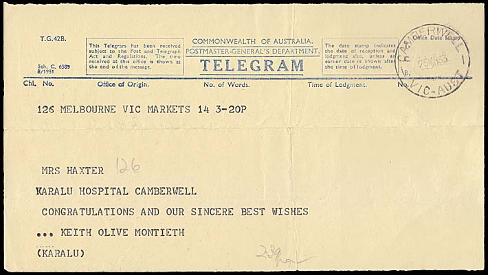 | 10B (51) | Sch. C. 6589 8/1951. | 16 October 1952 at Telegraph Office Oxford Street, NSW. |