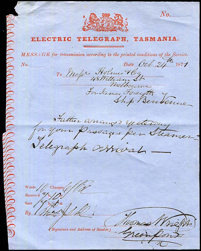 | An inter-colonial telegram sent to Melbourne, Victoria. Rare to see them. |