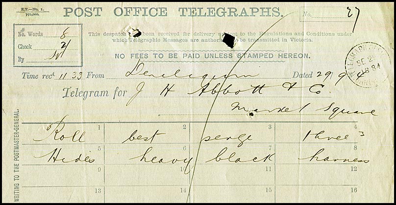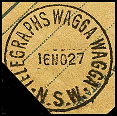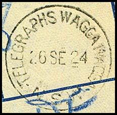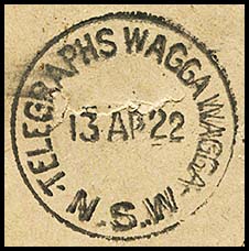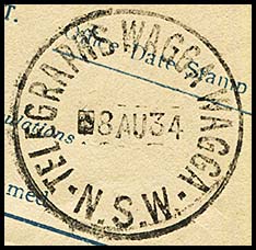 The usual Wagga Wagga postal date stamp was also used on telegrams. This format changed over the years.