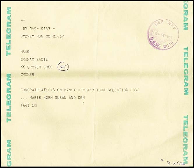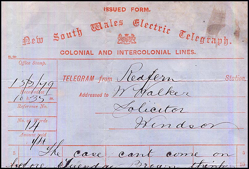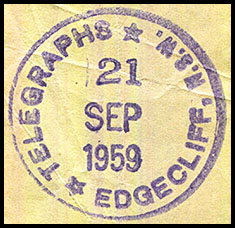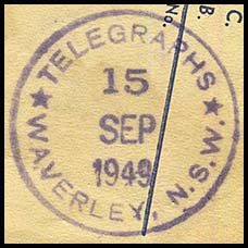 No special date stamp for use with telegraphic work at Redfern is recorded.