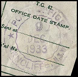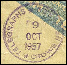 At some stage an unusual design was commissioned for a Post Office date stamp which was used on at least one telegram.