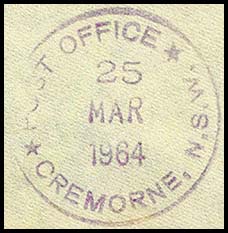 Balmain date stamp for postal purposes.
