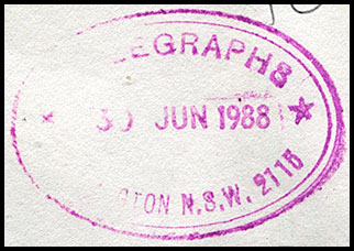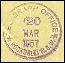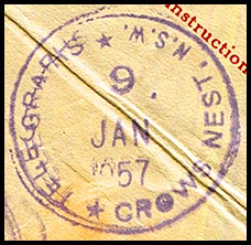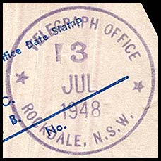 No special date stamps for use with telegraphic work were issued to Woollhara. Instead the postal date stamp was used with telegraphic work.