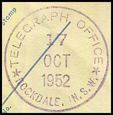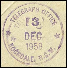 Three formats of rubber circular TELEGRAPH OFFICE date stamps were issued to the Rockdale Telegraph Office All had separation marks as 5 pointed stars.