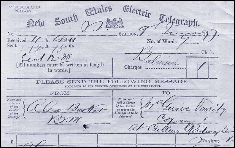 6 June 1879: The Gazette announced that Mr. G. H. McGarrity, messenger at Ashfield was to become an operator at Rookwood.