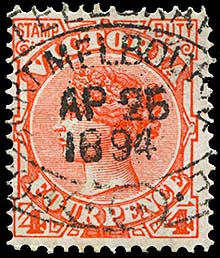 ![]() 13 January 1894. Used on a wrapper to Gordon & Gotch. |