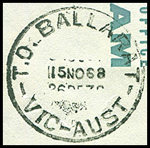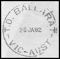 SEND A TELEGRAM Date stamp: Circular (diameter 22 mm) Base inscription: VIC. AUST. Characteristics: Die 4A: A over G. Earliest date recorded: Latest date recorded: Number in Census: 2. |