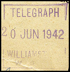 A rubber TELEGRAPH date stamp (RRV1-T) was also used at the Telegraph Office.