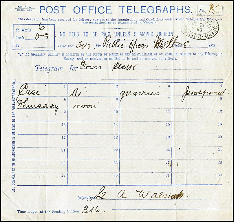 The Telegraph Office opened during 1861 or 1862. On 5 June 1873, The Age reported