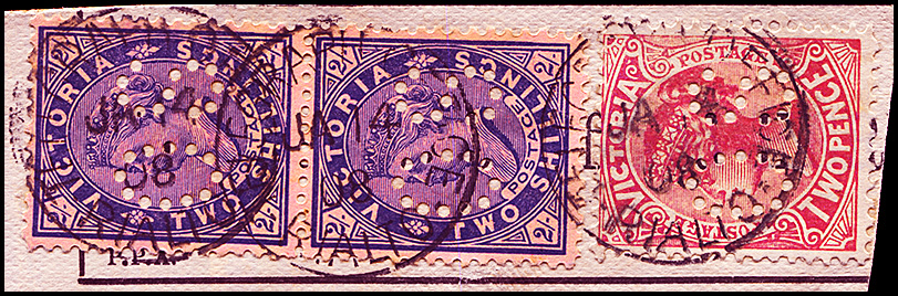 Early use. The earliest evidence of the operation of the Public Offices Telegraph Office is a telegram delivery form (VC-DO-9) used for a message transmitted from the Public Offices to Richmond on 21 June 1880. This 1-hole Belt & Buckle date stamp in black is the earliest strike at Richmond and the third earliest strike at any Office. |