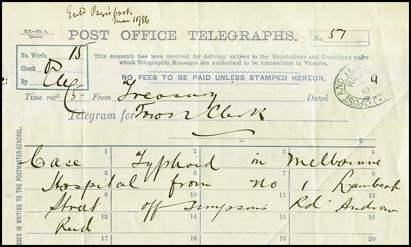 Early usage. The earliest evidence of telegraphic communication with the Treasury is a delivery form (VC-DO-11B) sent from the Treasury to the Town Clerk at Richmond on 8 March 1886. No Belt & Buckle date stamp was issued to the Treasury. |
