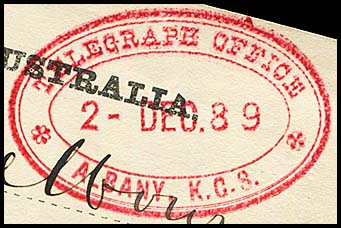 Albany was established as an outpost of NSW in 1827 to help combat any territorial ambitions the French may have. It is located on the western side of King George's Sound and the terms became to be used interchangeably to some extent. King George's Sound (from 1805) referred to the harbour while Albany was the settlement on the western shore. It is now King George Sound - because the geographical names people didn't like using possessive apostrophes (') as from the mid-1930s. The Telegraph Office opened in Albany K.G.S., combined with the Post Office, on 22 December 1872. The Albany Post Office had opened on 14 October 1834. Albany had been considered as a possible cable station in the planning of the All-Red route as well as for the cable to Mauritius and Durban. King George's Sound was the first and last port for the English mails (inbound and outbound) as well as for a quarterly shipping service to Singapore. From Albany, the mails were carried by pack horses to Perth in a journey taking about 6½ days. King George's Sound was also the last port for ANZAC troops being taken to Europe and the first Australian port for the few who returned. It was the only deepwater port in Western Australia until 1897 when Fremantle Port was established. About 16 January 1896, quadruplex instruments were fitted and tested in a new telegraph office which was then opened to the public on the following day. |