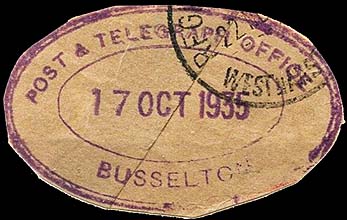 The Office was issued with a rubber oval Post & Telegraph Office date stamp (RO7-P&T) for use with telegraphs.